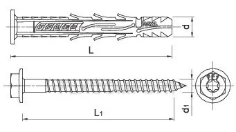 Rawlplug nylonová rámová hmoždinka s objímkou a šesťhrannou hlavou R-FF1 10×200 mm je spoľahlivý upevňovací prvok určený na pevné kotvenie rámov, konštrukcií a montážnych prvkov do betónu, plných aj dutých tehál či pórobetónu. Nylonové telo zaručuje dobrú rozťažnosť a pevné uchytenie v materiáli, zatiaľ čo pozinkovaná oceľová skrutka so šesťhrannou hlavou poskytuje vysokú pevnosť a ochranu proti korózii. Ideálne riešenie pre montáž okien, dverí, zábradlí, konzol alebo drevených a kovových konštrukcií.